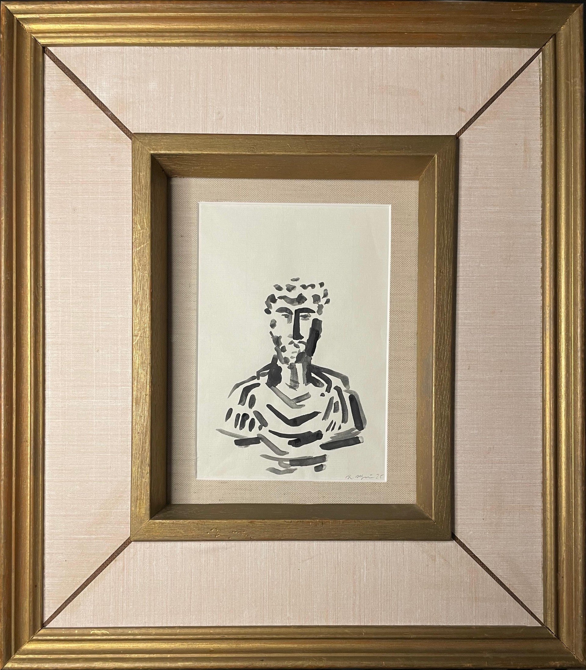 Reiner Allgeier, born 1989 in Freiburg, lives and works as an artist, illustrator, and lawyer in Berlin. His work was most recently shown in a group exhibition at the 032c Gallery in Berlin in 2025. He is interested in the effectiveness of timeless symbols, language, and mythology. The references that appear in his works draw on a wide variety of eras, from ancient spiritual motifs to images from sports, film, and media. The watercolours of marble busts take up the ancient practice of copying and studying classical sculptures and, by embedding them in found frames, further blur the line between original and reproduction.