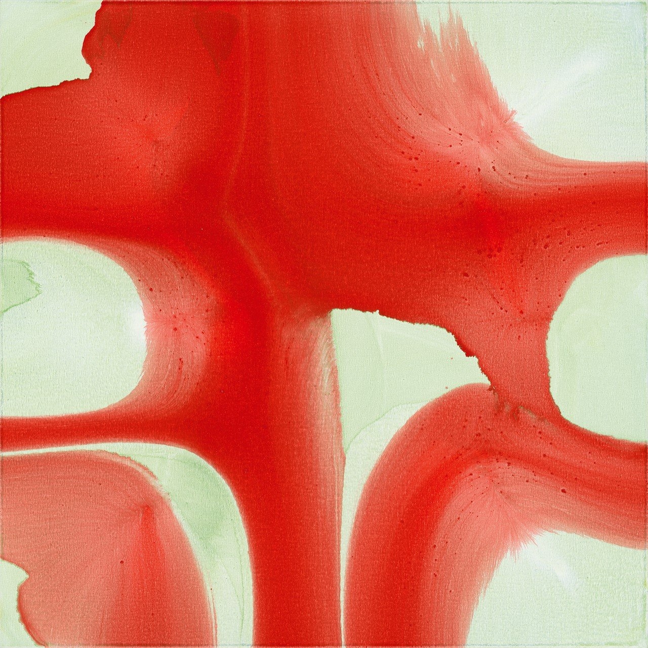 Tatjana Valsang, born in St. Tönis and trained at the Düsseldorf Art Academy, developed a highly precise abstract visual language that treats colour as a spatial-physical substance. Her paintings are created using a wet-on-wet technique on horizontal canvas: gravity, flowing movements, and transparent layers form organic-looking structures that balance between chance and control. The acrylic painting on display unfolds a vibrant depth of overlapping colour fields and delicate gradients. The composition appears like a floating resonance chamber: dense, luminous, yet carried by a subtle openness. A work that impressively reveals Tatjana Valsang’s masterful combination of material sensitivity and atmospheric radiance.