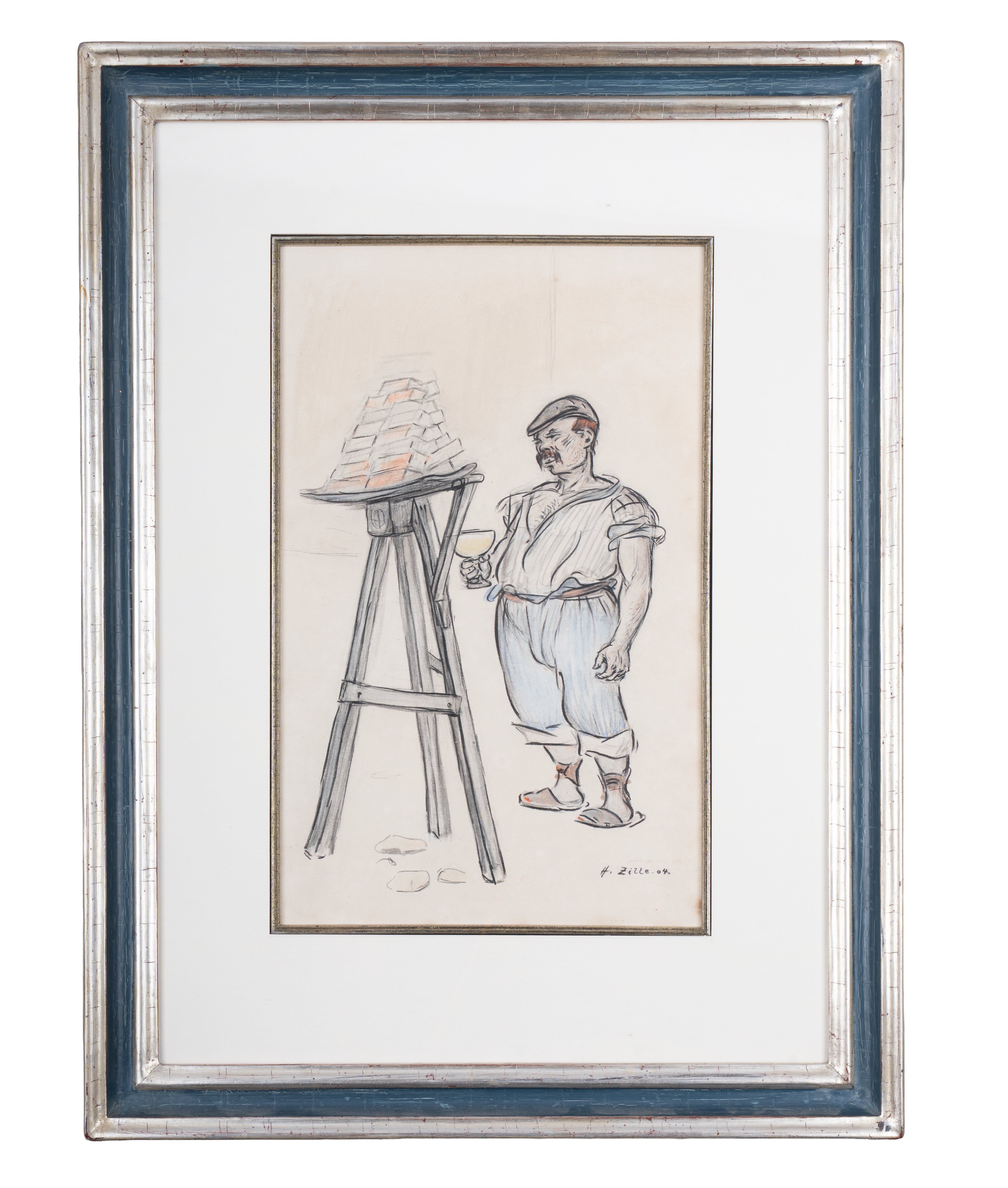 Heinrich Zille is one of the most influential artists of the early 20th century. As a sensitive observer of everyday life in Berlin, he devoted himself to the people of the big city with an unmistakable eye—with empathy, humor, and a directness of drawing that makes his work unique to this day. His characteristic lines, often based on quick sketches, condense milieu studies into artistic snapshots of urban life. The present drawing unfolds precisely this special intensity: with a few precise lines, Zille captures a scene full of human closeness and quiet irony. A rare work that demonstrates Zille’s masterful ability to transform everyday observations into timeless art.