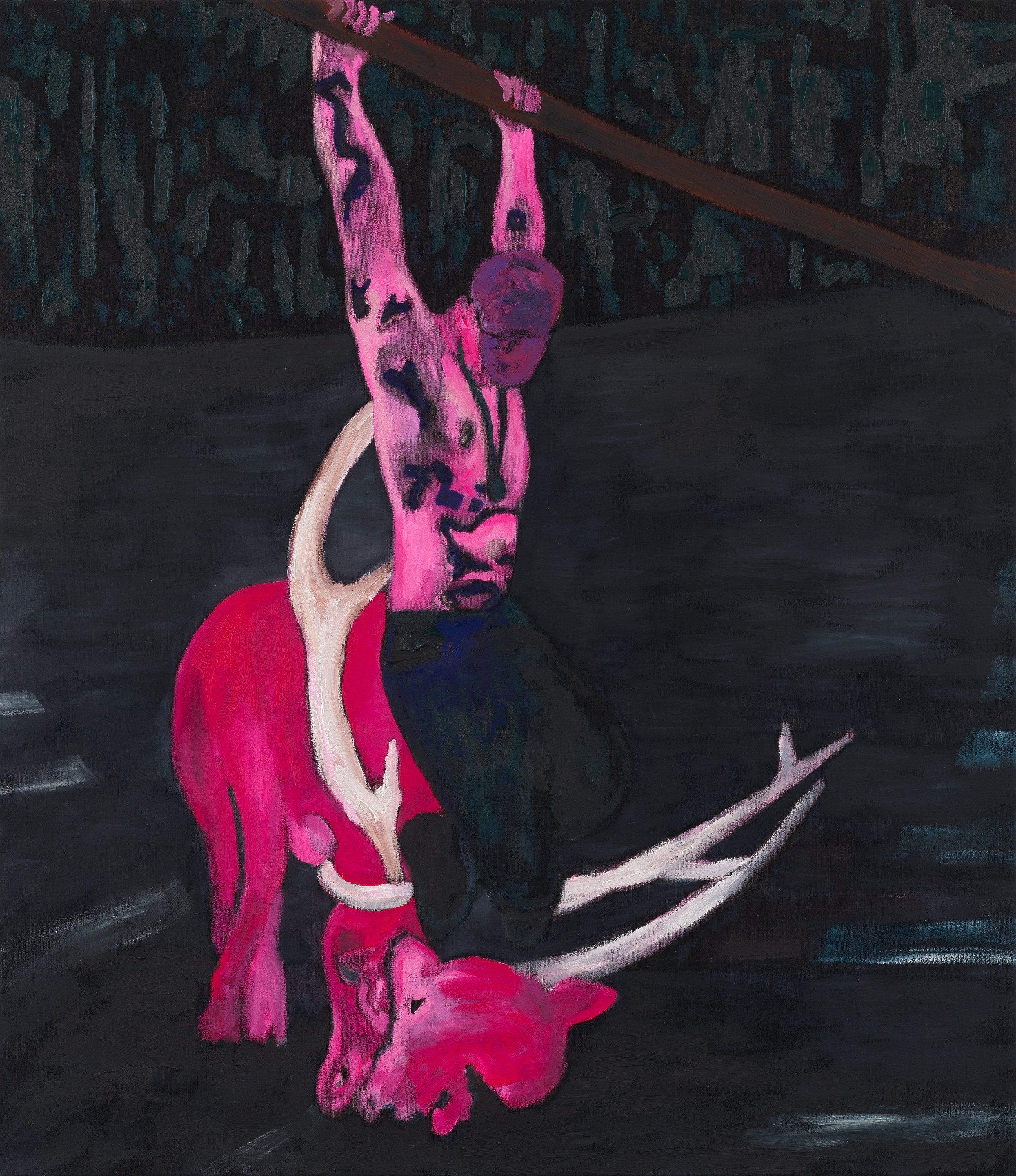 In thunderstruck, too, we are confronted with ambiguity. Who is here aggressor and who victim: human or animal? Animals in Krewer’s paintings symbolise persons. The artist is concerned not with posthumanist questions about interspecies relationships, but with humankind’s animal nature and the essence of humanity.
