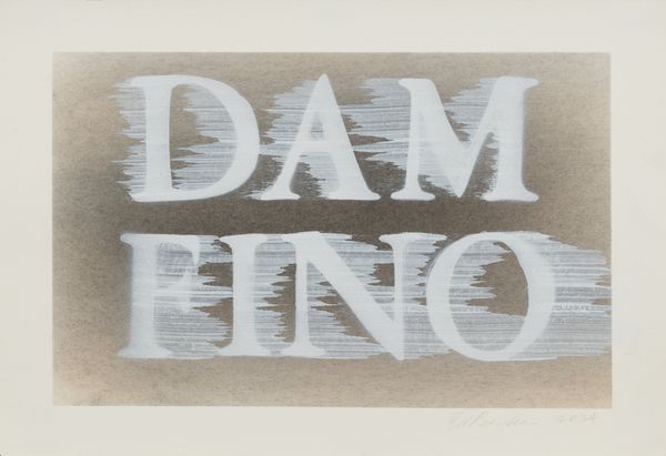 Ed Ruscha (b. 1937 in Omaha, Nebraska) turned his attention to the visual and linguistic tropes of advertising right from the start of his artistic career. He quickly came to see words not simply as carriers of information, but recognized their potential as independent visual forms. With laconic humour, a reduced palette and concise compositions, he developed a pictorial vocabulary in which letters are the main actors. The work Dam Fino is a potent example of this. The title – derived from a slang abbreviation of “damned if I know” – appears in a clear typography characteristic of Ruscha, floating freely in front of an atmospherically deliquescent colour background. Language and image are here inextricably intertwined: the word is not only read but also viewed as an object.