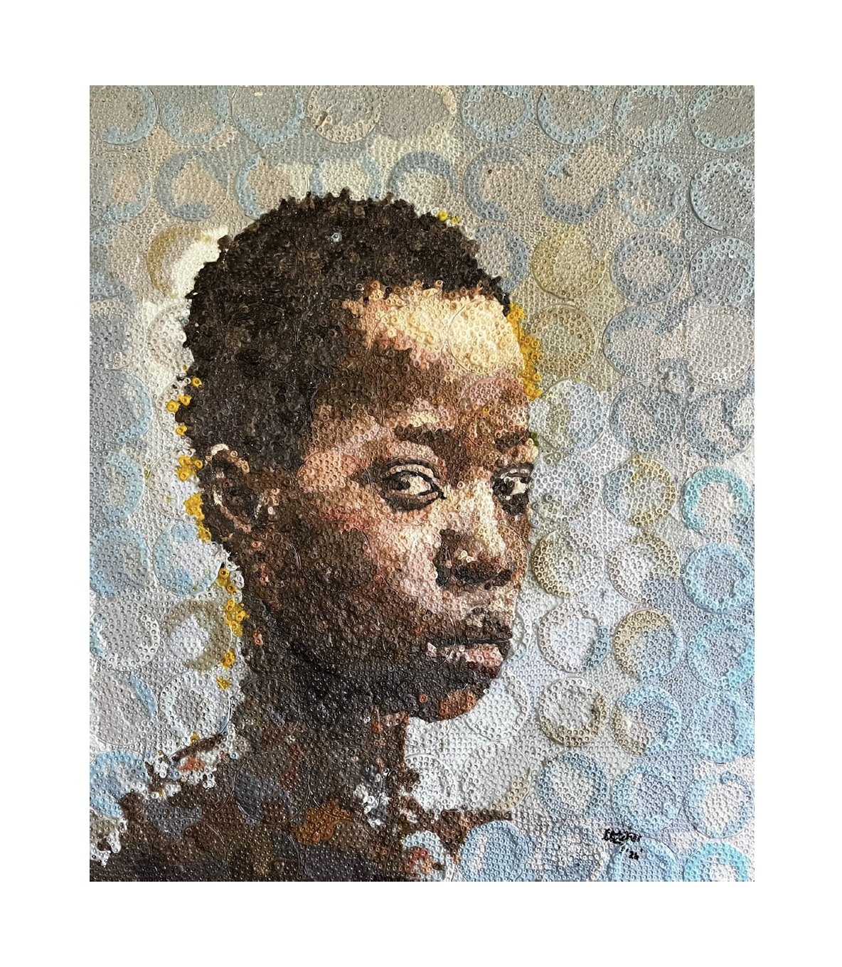 Shediene Fletcher, born in Manchester, Jamaica, is a mixed media artist who studied at the Edna Manley college of the Visual and Performing Arts. She is recognized for her creative use of materials, including animal skin , bones and wax. Although not primarily focused on portraiture, Fletcher incorporates portraits into her works on wax and goat skin, creating a unique fusion of organic textures and human expressions. Her work bridges traditional craft and contemporary art , exploring interaction between materiality and identity. Her works have been featured in the Jamaica Biennial at the National Gallery of Jamaica, …” And I resume the struggle “ at the Olympia Gallery Jamaica and Suzie Wong presents Artsy show Emerging contemporary: Jamaica online exhibition to name a few.
