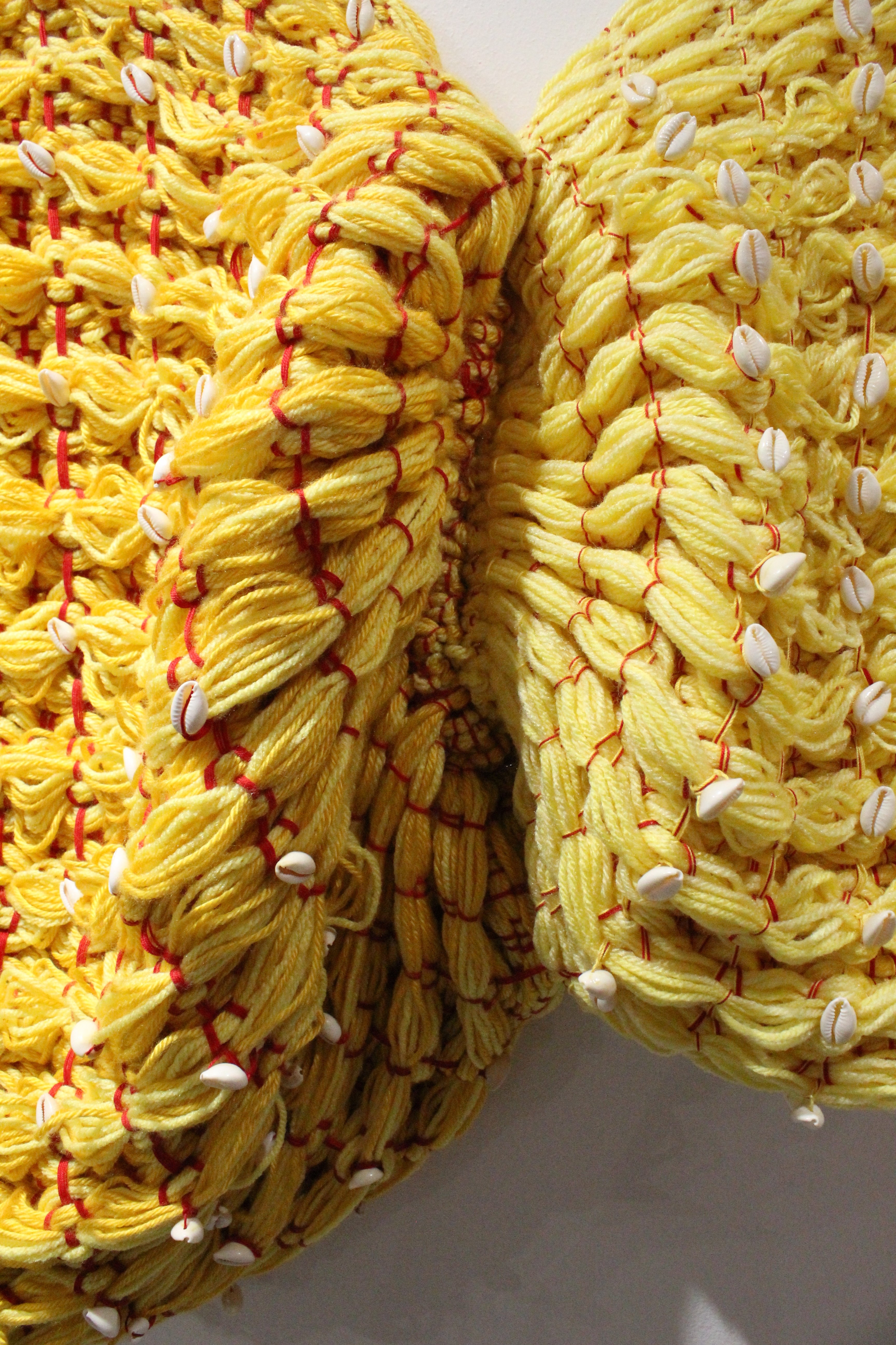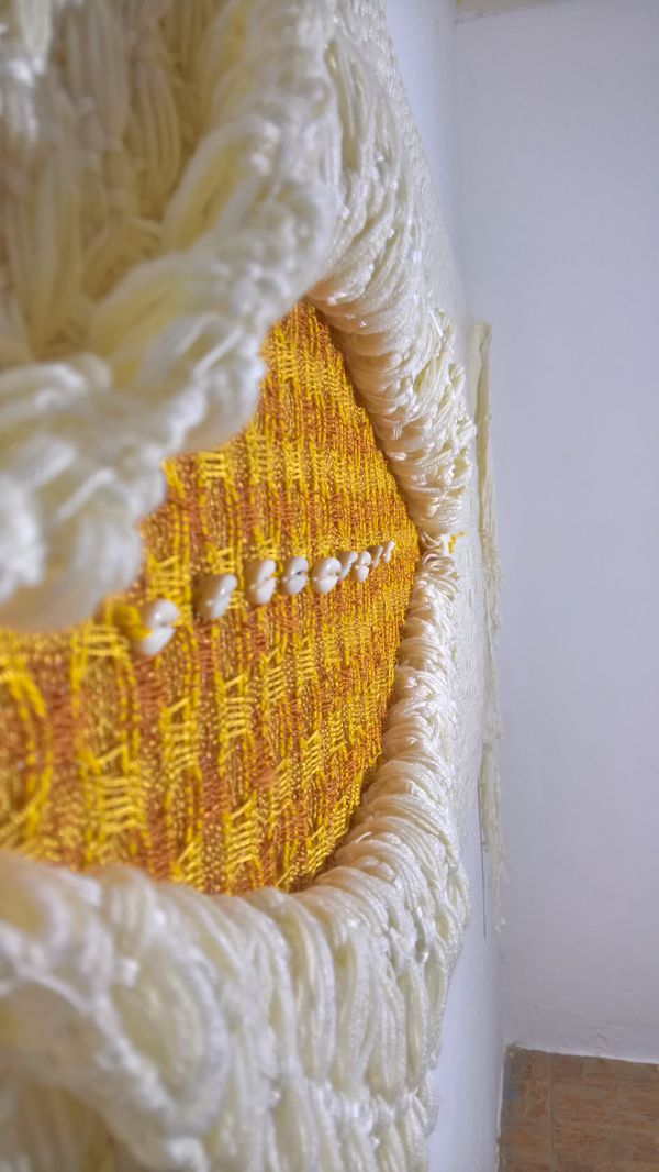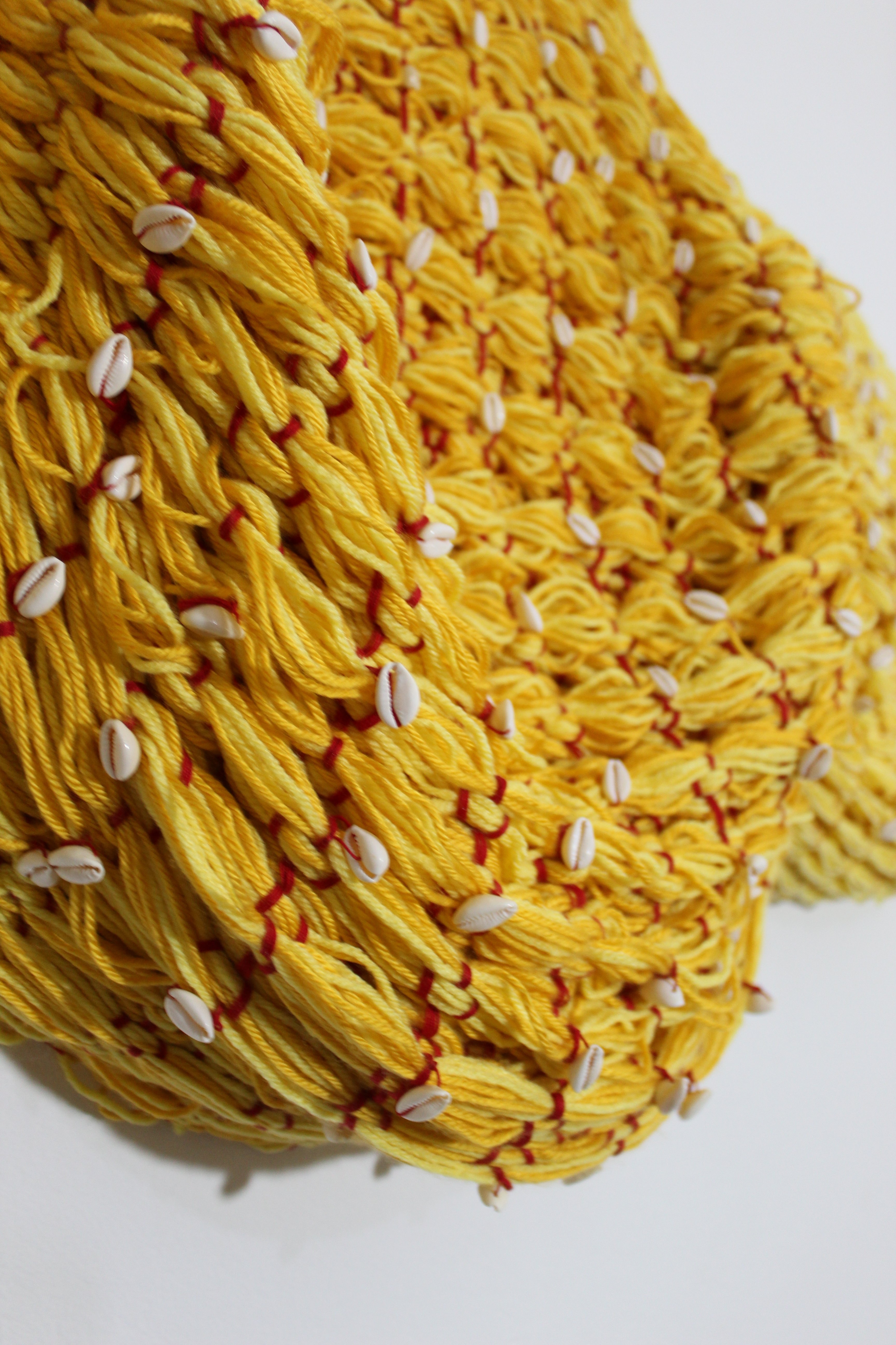Hand-Woven and Embroidered Mixed Fibers and Cowrie Shells