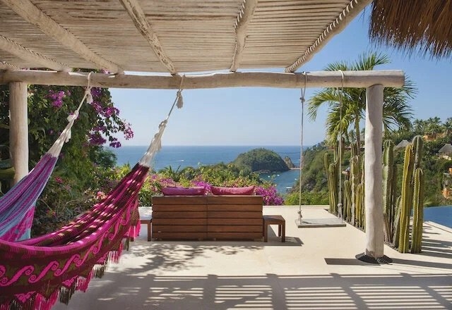 Perched above the untamed coastline of Jalisco, Mexico. Casa Dragón offers a serene private retreat where open, sculptural spaces flow seamlessly into panoramic Pacific coastline vistas. Terraces, shaded palapas, and a heated infinity pool shape a setting of understated elegance, with evenings unfolding between Playa Rosa’s golden light and the villa’s secluded tranquility.